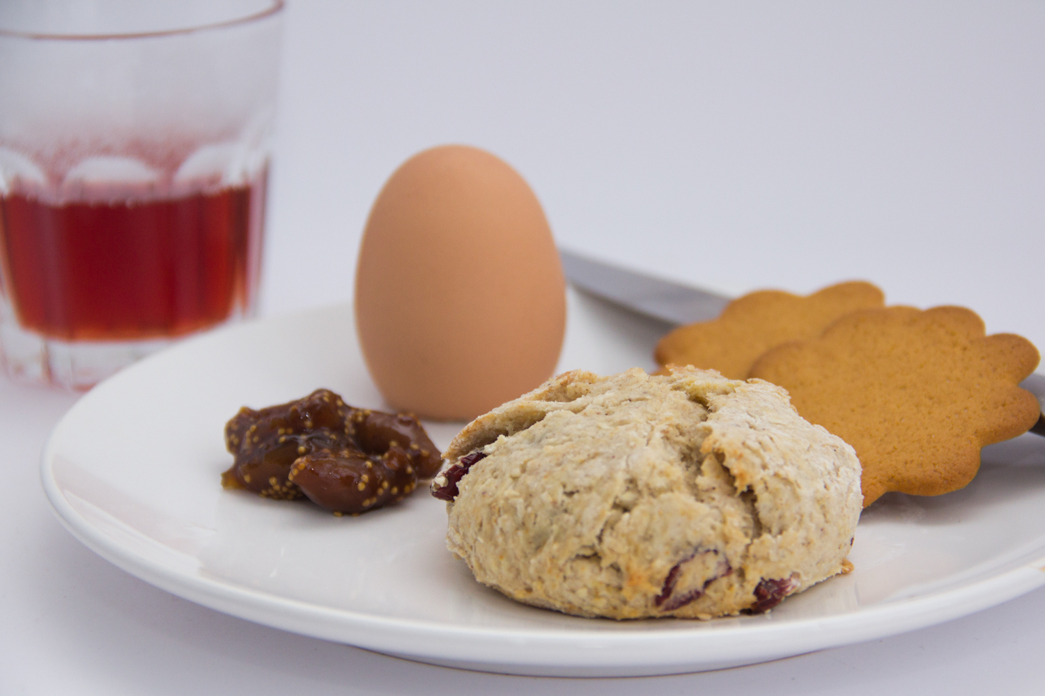 Preheat the oven to 225 degrees. Mix all dry ingredients. Crumble butter and add the milk and egg. Mix into a dough. Flatten the dough about 2 cm thick and stick out scones with a glass or form. Place on a baking sheet and bake for 10-15 minutes. Serve lukewarm with butter and marmalade.